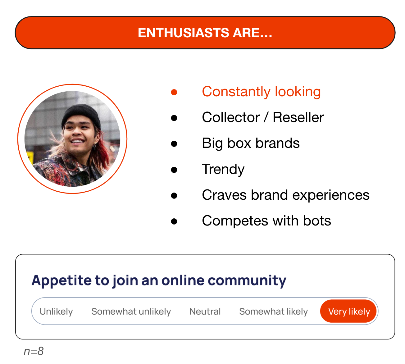 I spent two weeks interviewing streetwear fans I knew, but the results fell short. While many liked and owned streetwear, they didn't actively follow the topic and/or engage with Complex frequently.