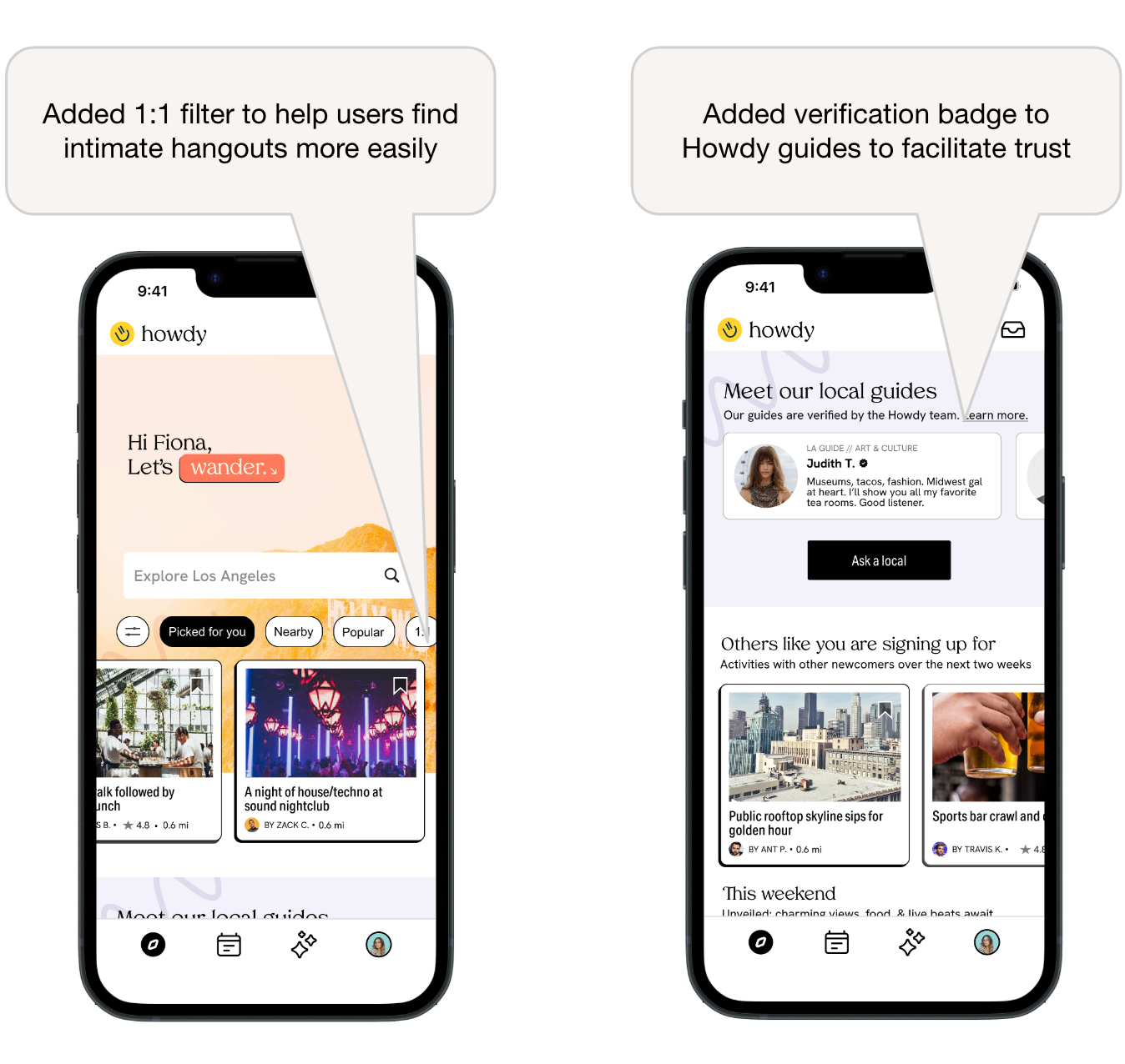 Trust was a very valid concern from our participants – they need to be assured that our guides are vetted and safe. Some also felt more comfortable interacting 1:1. See changes below.